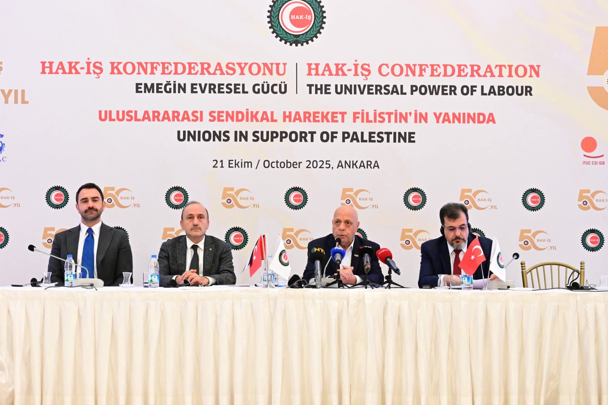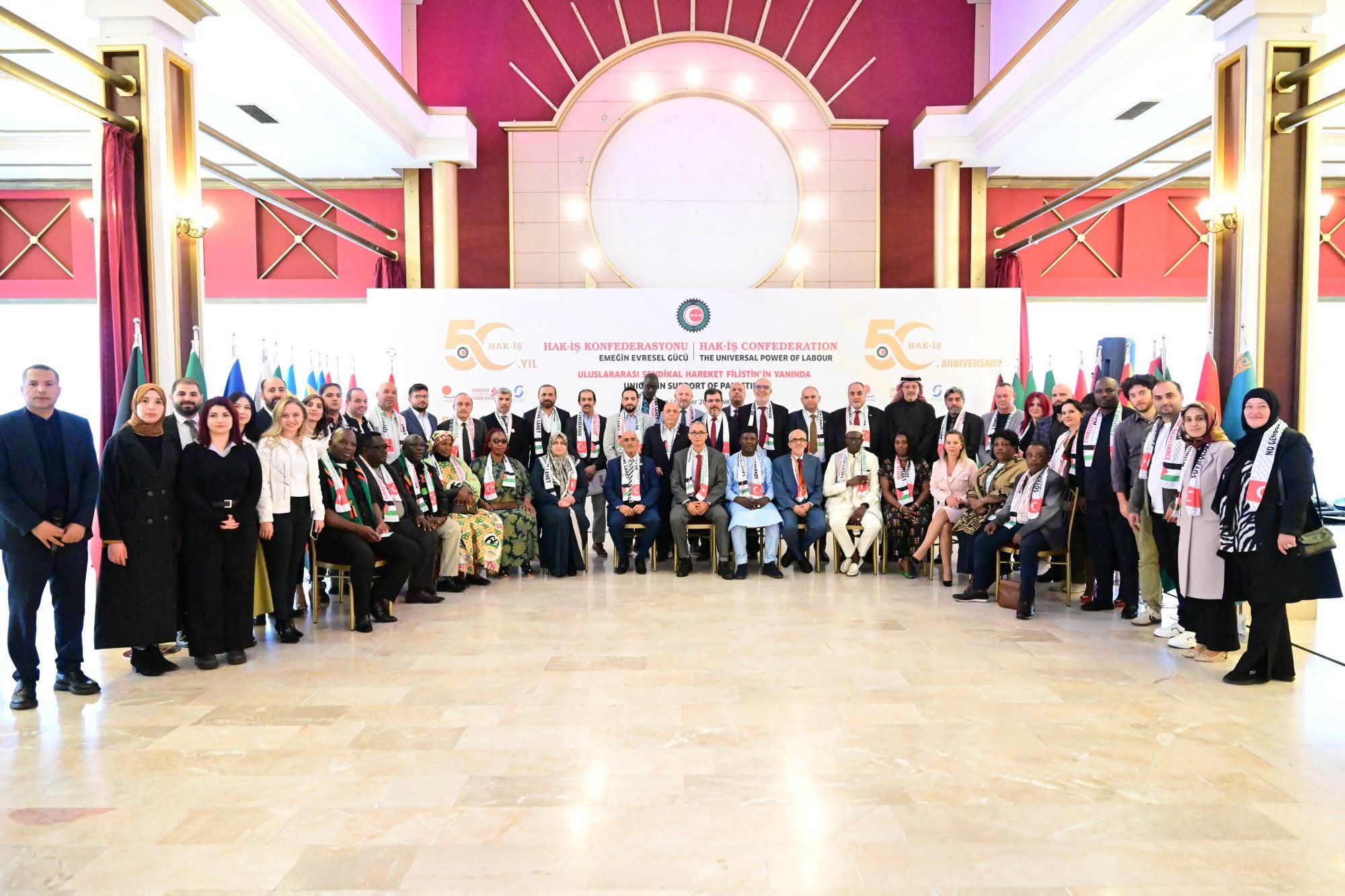 وأشاد رئيس الاتحاد الحُر في كلمته بالدور الريادي الذي يقوم بهاتحاد عمال حق-إيش في الدفاع عن حقوق العمال وتعزيز قيم العدالة الاجتماعية، مشيراًإلى أن الاتحاد التركي يمثل نموذجاً يُحتذى به في الجمع بين التنمية الاقتصادية والعدالة الاجتماعية، وفي مواقفه المشرّفة تجاه القضايا الإنسانية، وعلى رأسهاالقضية الفلسطينية.