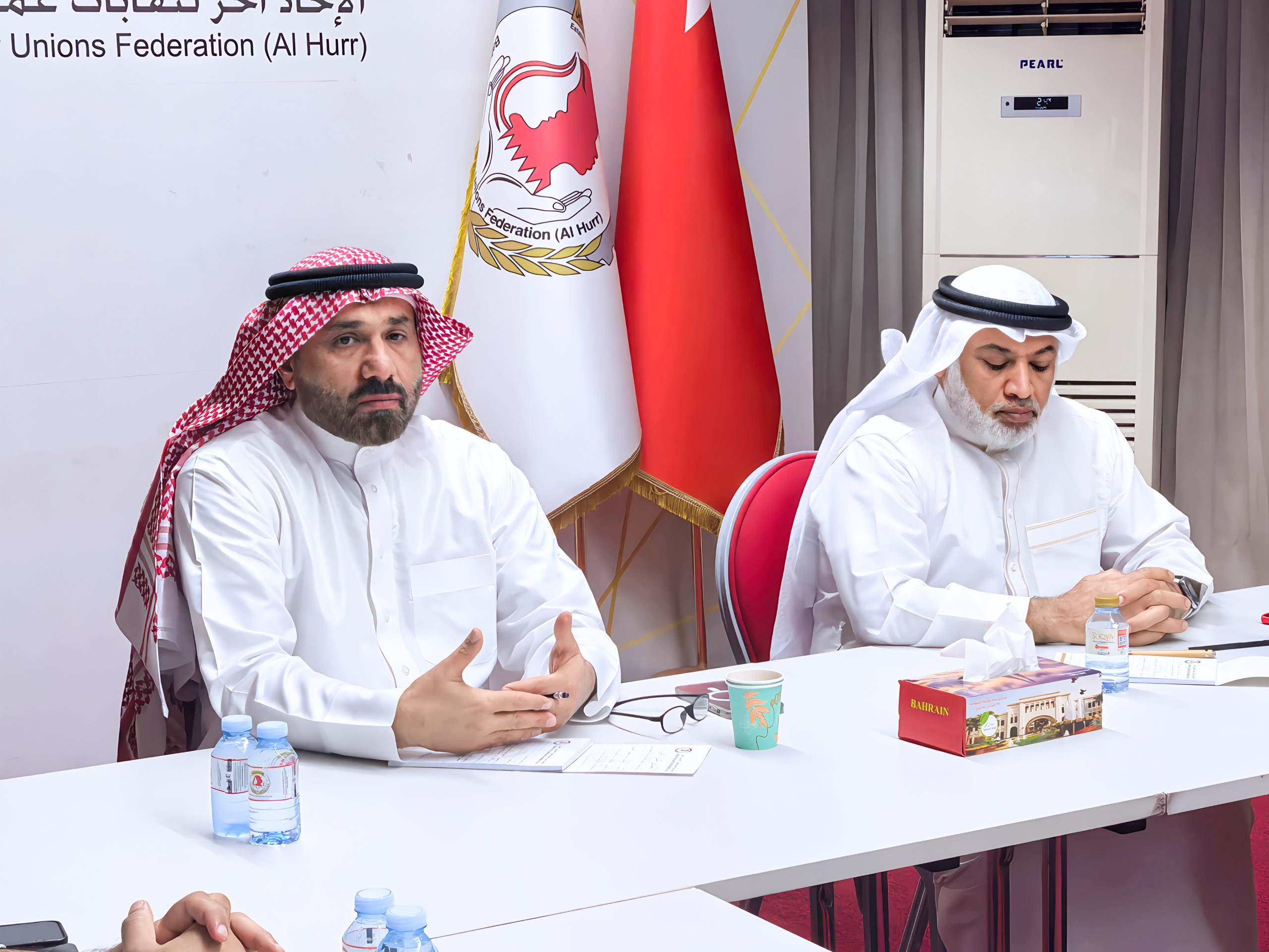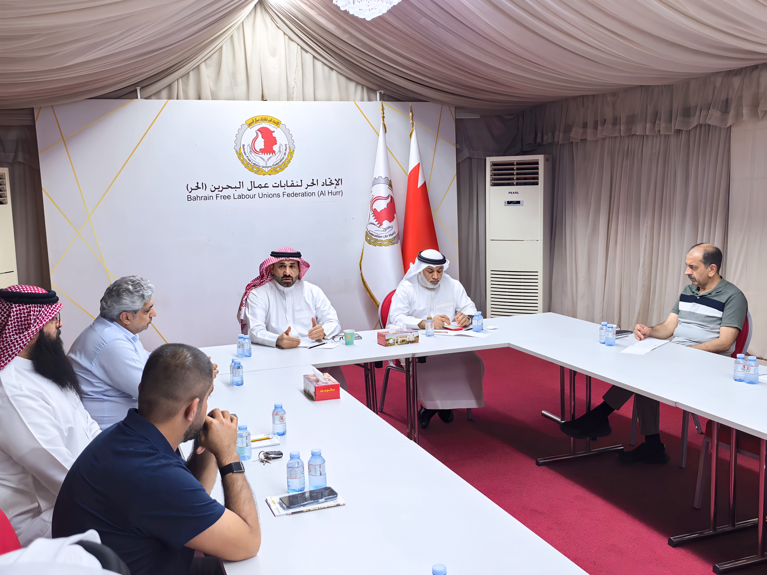 عقد رئيس الاتحاد الحُر لنقابات عمال البحرين، الأستاذ يعقوب يوسف محمد، الاجتماع الدوري مع رؤساء النقابات العمالية الأعضاء بالاتحاد، وذلك في إطار تعزيز التنسيق النقابي ومتابعة القضايا العمالية ذات الاهتمام المشترك.