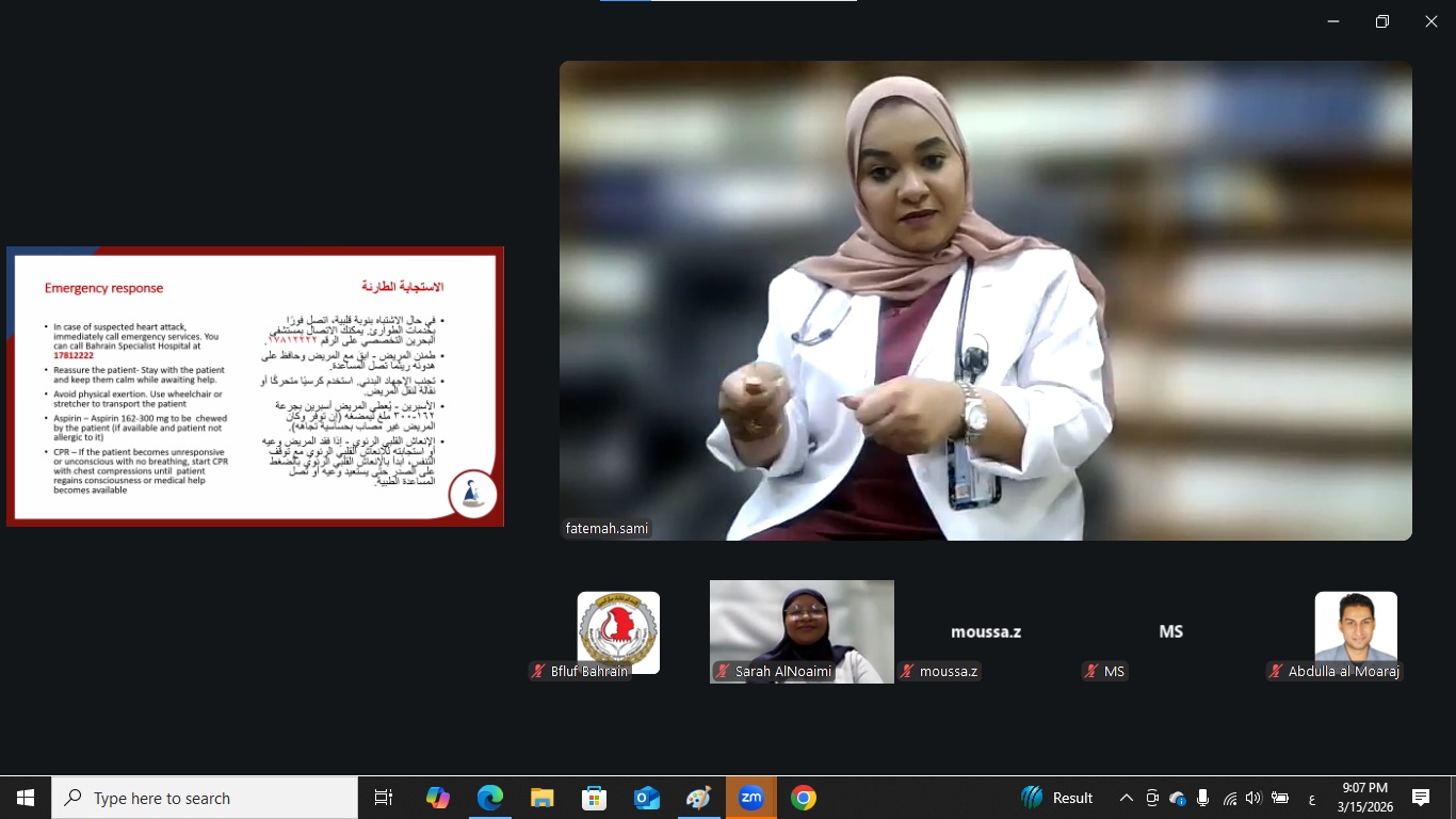 في إطار جهوده المتواصلة لتعزيز الوعي الصحي والنفسي لدى العمال والمجتمع، وحرصه على تقديم برامج تثقيفية تسهم في دعم الاستقرار النفسي والصحي، خصوصاً في ظل الظروف الاستثنائية التي تمر بها مملكة البحرين خلال مرحلة العدوان الإيراني الغاشم وما قد تسببه من حالة قلق وضغوط نفسية لدى بعض الأفراد، نظّم الاتحاد الحُر لنقابات عمال البحرين، بالتعاون مع مستشفى البحرين التخصصي، محاضرة صحية تثقيفية بعنوان "مقارنة بين نوبة الهلع ونوبة القلب"، وذلك ضمن برنامج الاتحاد الهادف إلى رفع مستوى الوعي الصحي لدى العمال وأعضاء النقابات والمجتمع.